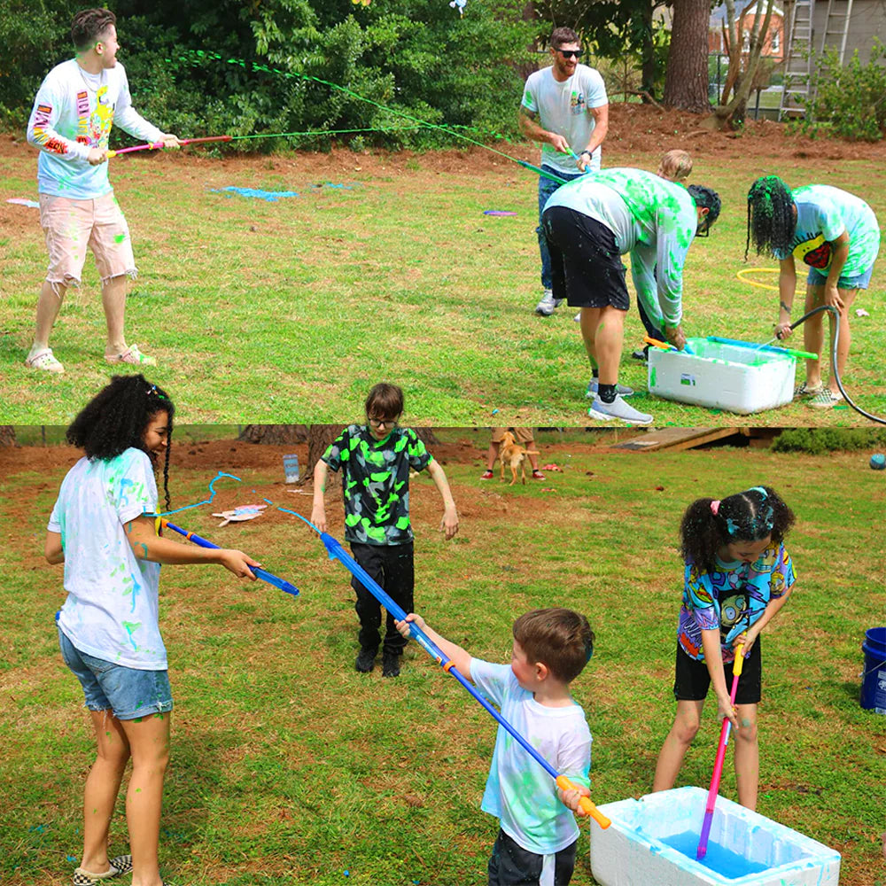 Simply have a number of slime blasters on the ready, with empty blasters handed out to the party guests prior to the reveal. Also have a few more buckets / containers of Instant Slime pre-made, easily accessible for your guests to join in on the slime blaster fight fun!