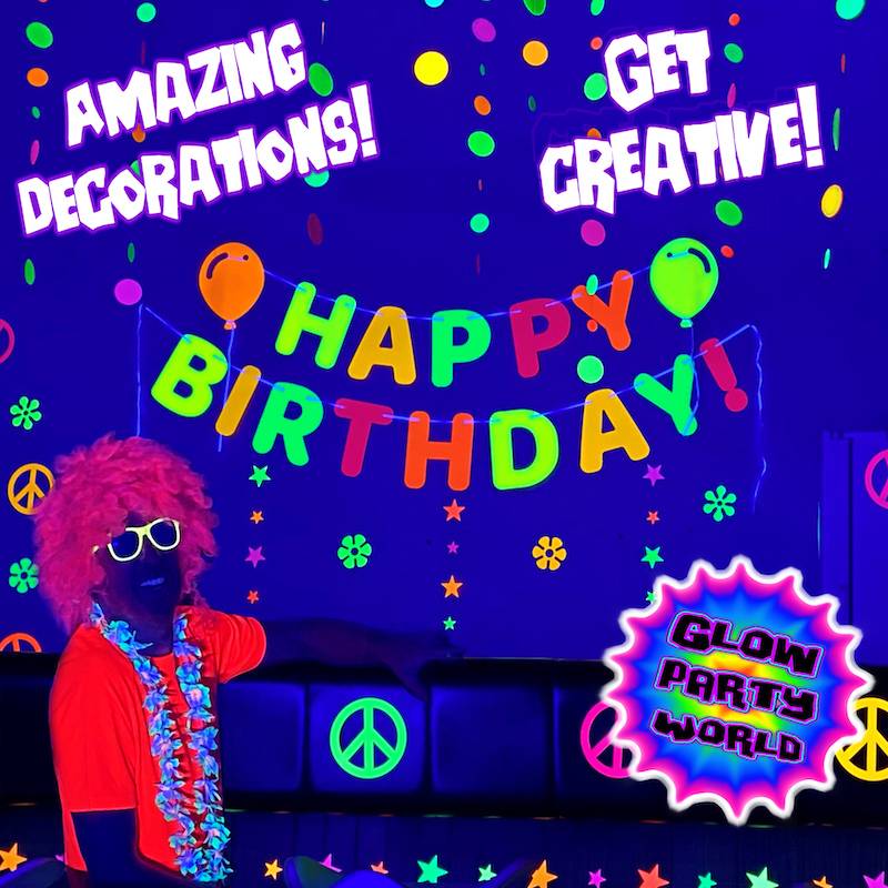 Step back in time with peace and love for a 1960's neon party, drag out your spandex and leg warmers for a hilarious 1980's neon party, or get groovy with a neon disco party. Each of these unique and fun neon party theme ideas have their own different decoration and outfit ideas which we have outlined below. Click on the links to learn how to throw your own decade specific neon party by using the awesome Glowave Black Light kits.