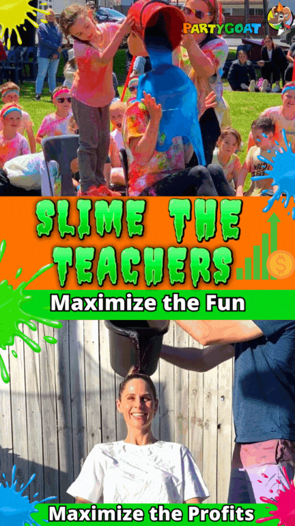 Kid's loving watching someone get coated in runny, slimy, sludge. So what better way to incentivize them than offering a slime the teacher reward! This is a great idea for elementary school fundraising.