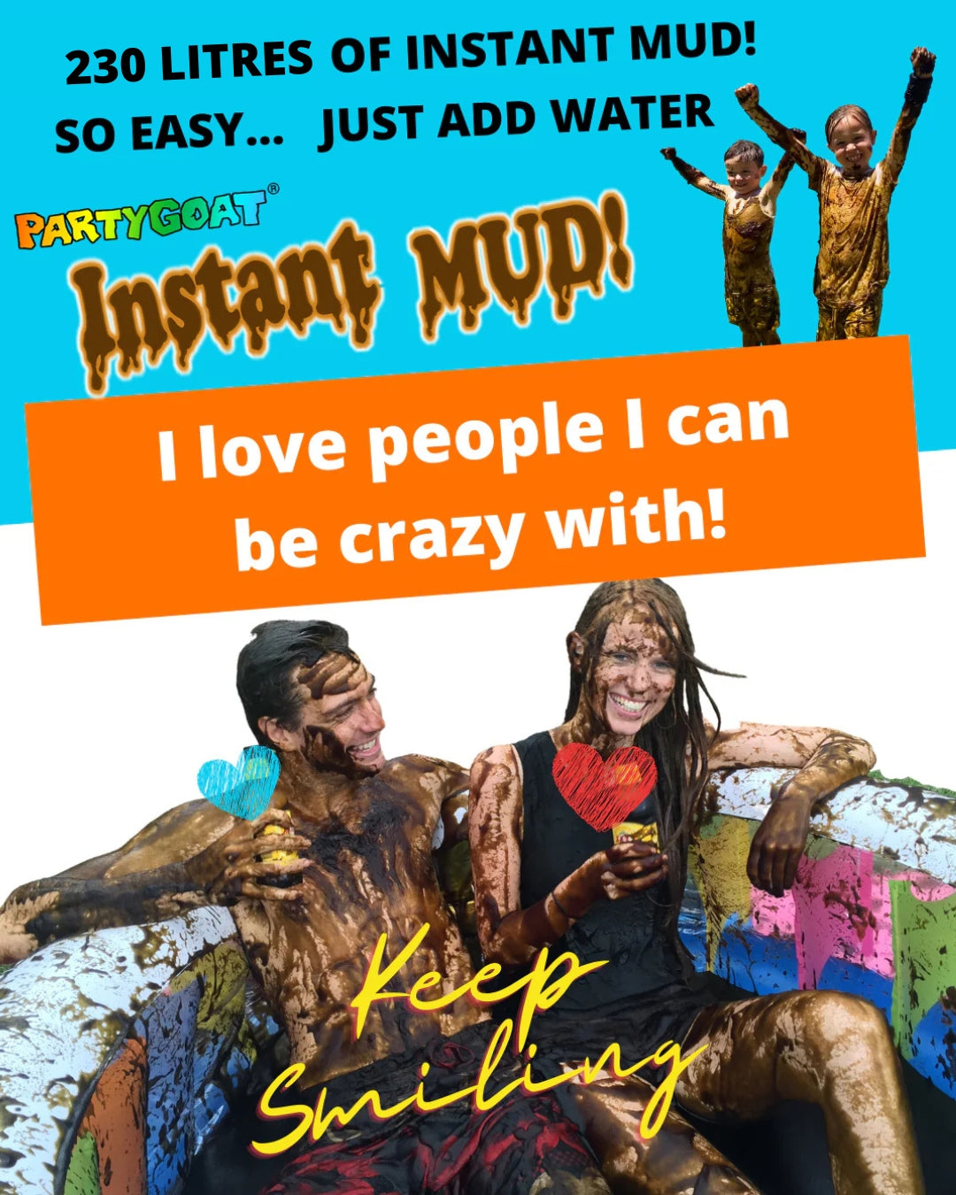 Party GOAT Instant Mud is environmentally friendly and safe for children and pets.