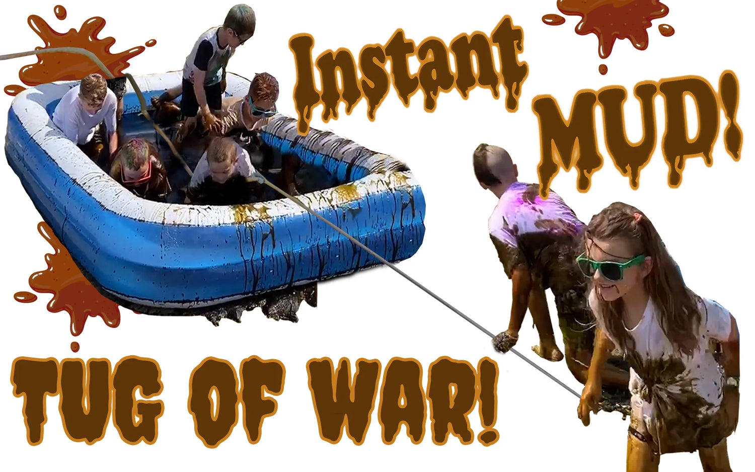 • MUD TUG OF WAR: The losing team gets pulled into the pool of mud).