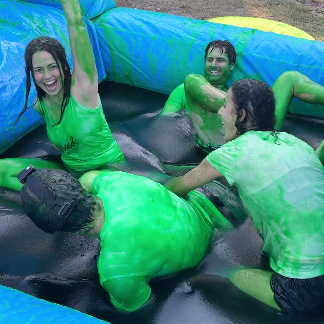 Instant Slime is perfect for a range of carnival inspired games. Hit the target to knock a large bucket of slime over a challengers head. Hilarious backyard fun or a great fundraising activity. Charge per ball for the chance to slime a volunteer. Party GOAT slime works great in products such as Soak N Wet and Splash Tower or make your own version with a bucket on a rope that is wrapped around an A-frame. Click here for more information about how to build slime games