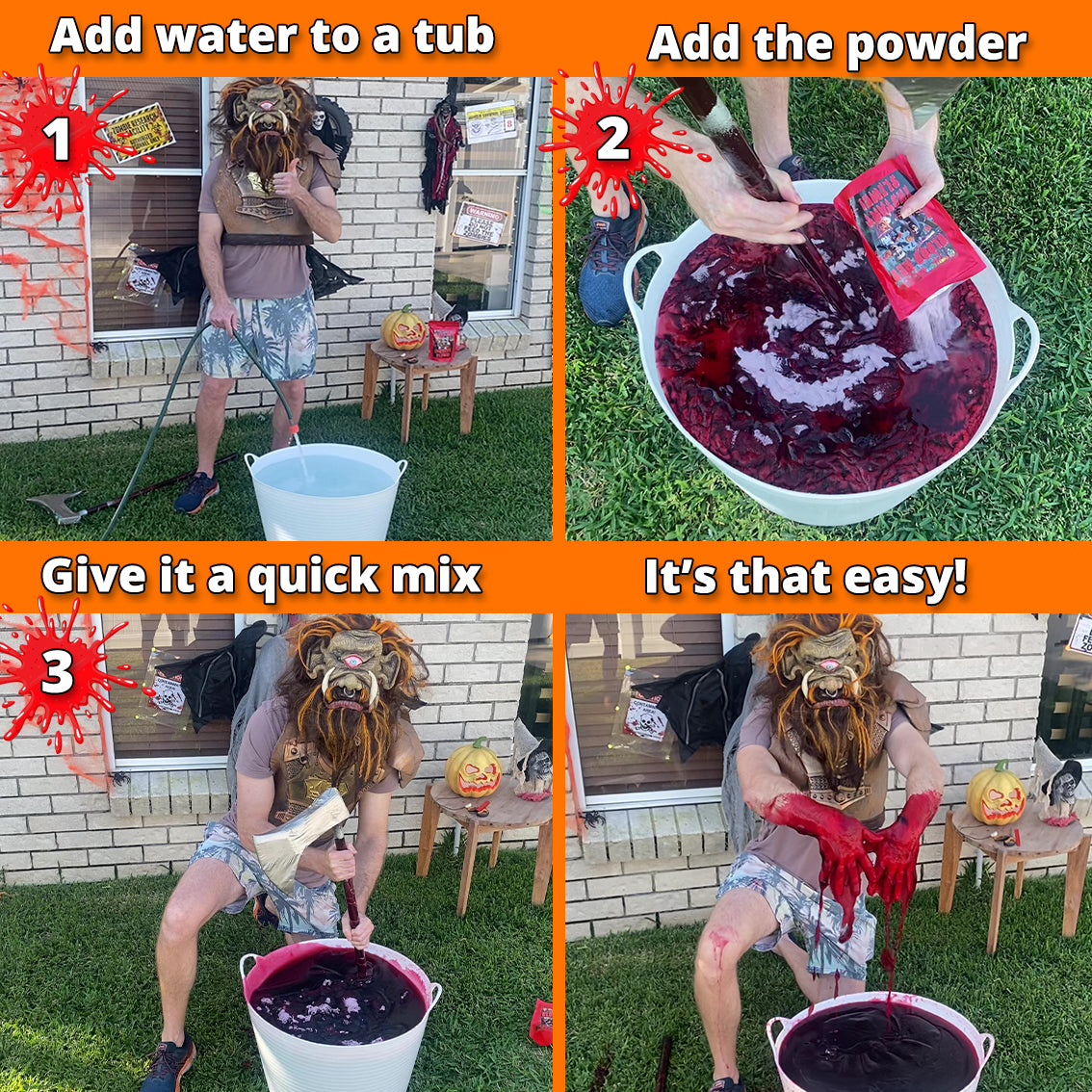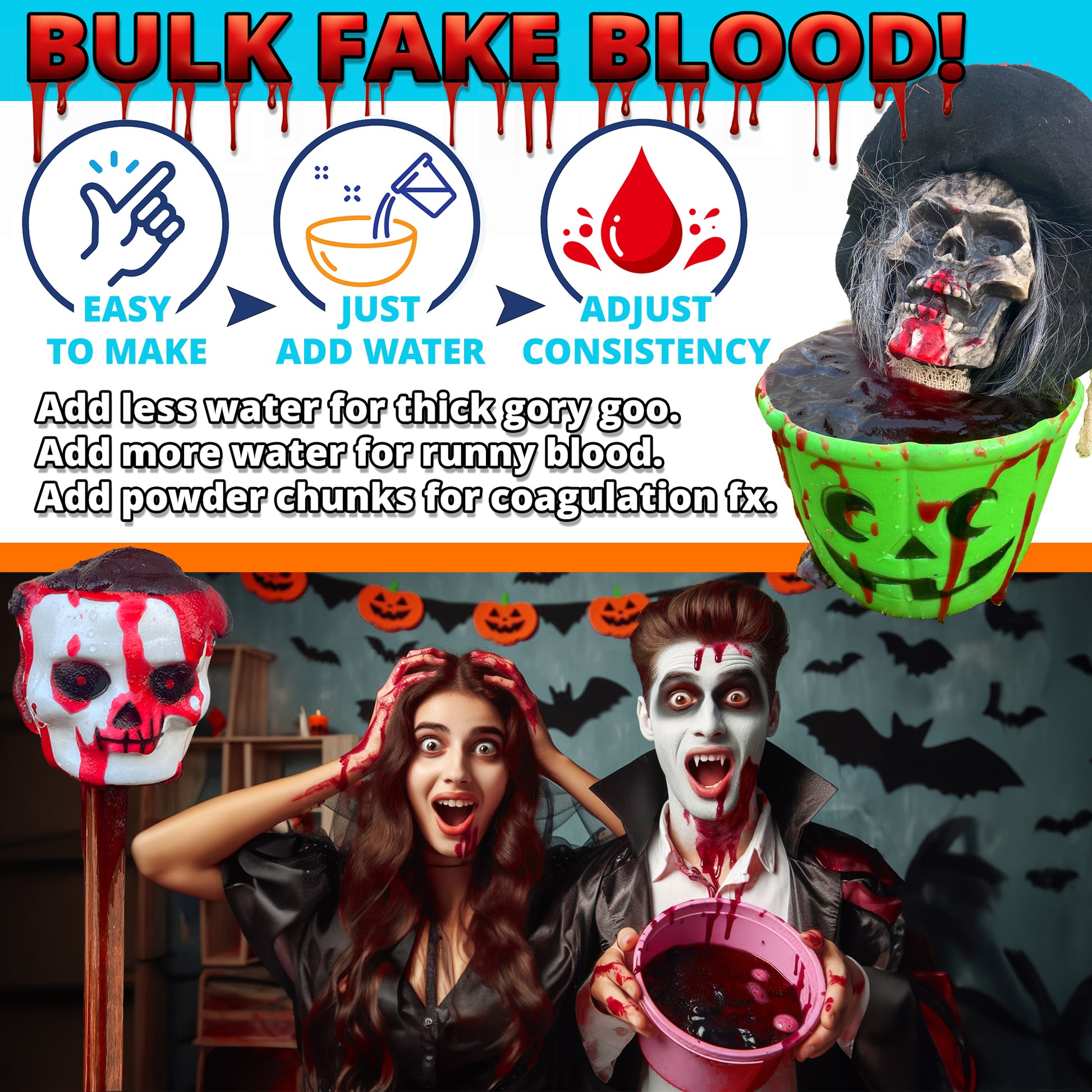 🩸Massive Blood Supply: Just add water to our blood red slime powder to create up to 15 gallons of realistic, washable fake blood. Perfect for Halloween, theater, horror films, and more.
