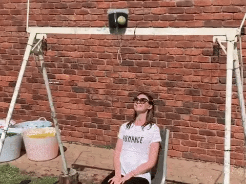 We place a circular target on one size and a sharp nail on the other side. Attach a netted bag around a pole over the victims chair and line it up with the nail.